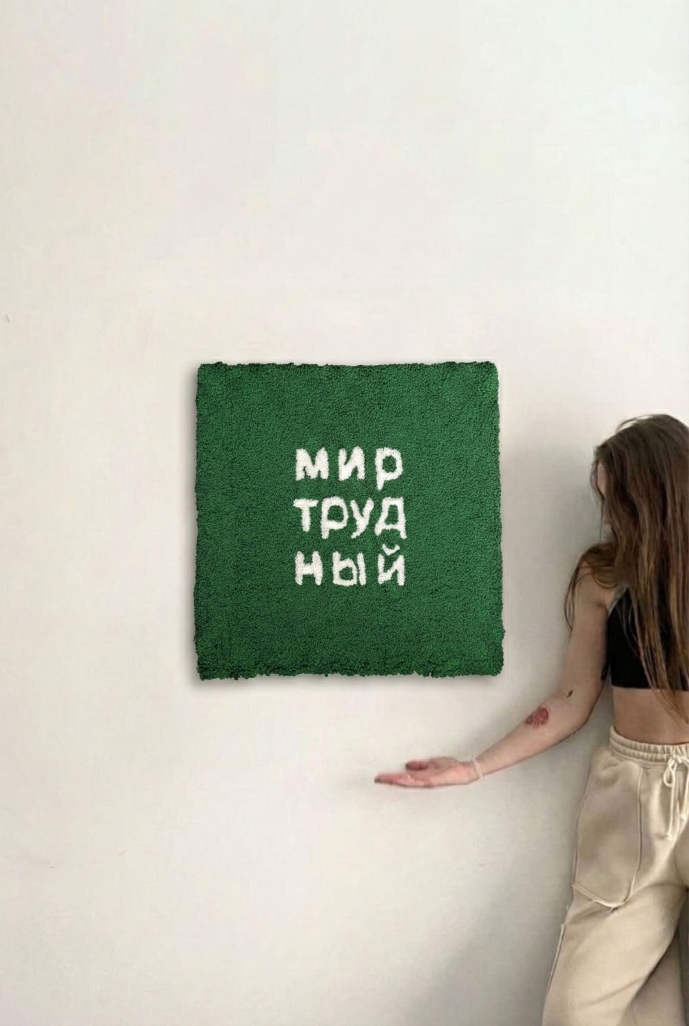 коврик, 47х47 см Акрил / противоскользящий подклад. Петля. Можно использовать на полу либо повесить на стену (крючки крепления на стену есть на ковре). Рисунок: «МИР-ТРУД-НЫЙ» Ещё варианты других ковриков в наличии есть в группу в Телеграм: @crafttaftstudio (https://t.me/crafttaftstudio) Возможно изготовление коврика на заказ. Цена: 4800 RSD Подробности