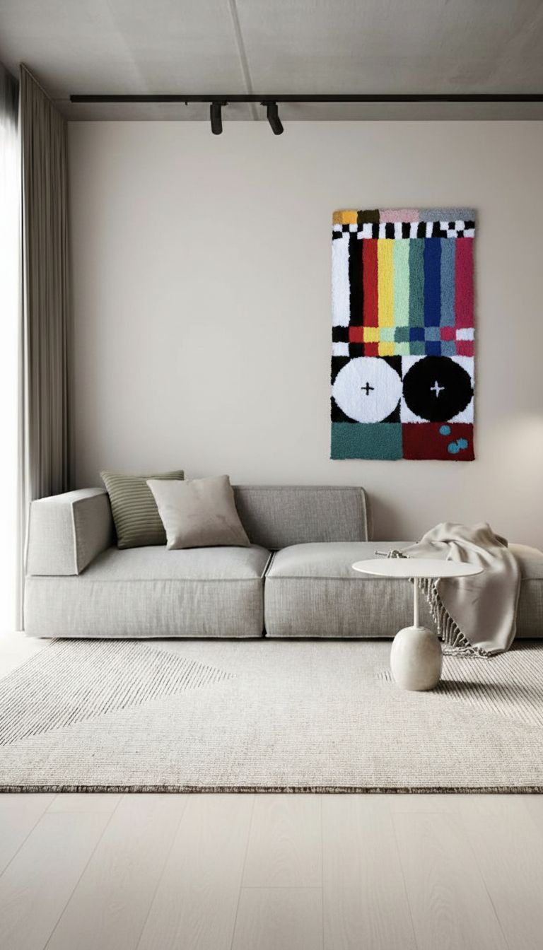 коврик, 50х90 см Акрил / противоскользящий подклад. Можно использовать на полу либо повесить на стену (крючки крепления на стену есть на ковре). Рисунок: «Настроечная таблица» Ещё варианты других ковриков в наличии есть в группу в Телеграм: @crafttaftstudio (https://t.me/crafttaftstudio) Возможно изготовление коврика на заказ. Цена: 5800 RSD Подробности