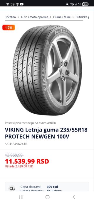 Совершенно новая летняя шина Viking 235/55r18 Protech Newgen 100v, в упаковке, доставлю по Новом Саду, Петроварадину, Ср. Каменице, Беочин или экспресс-почтой по всей Сербии. Цена в интернете около 100 евро за колесо. Подробности