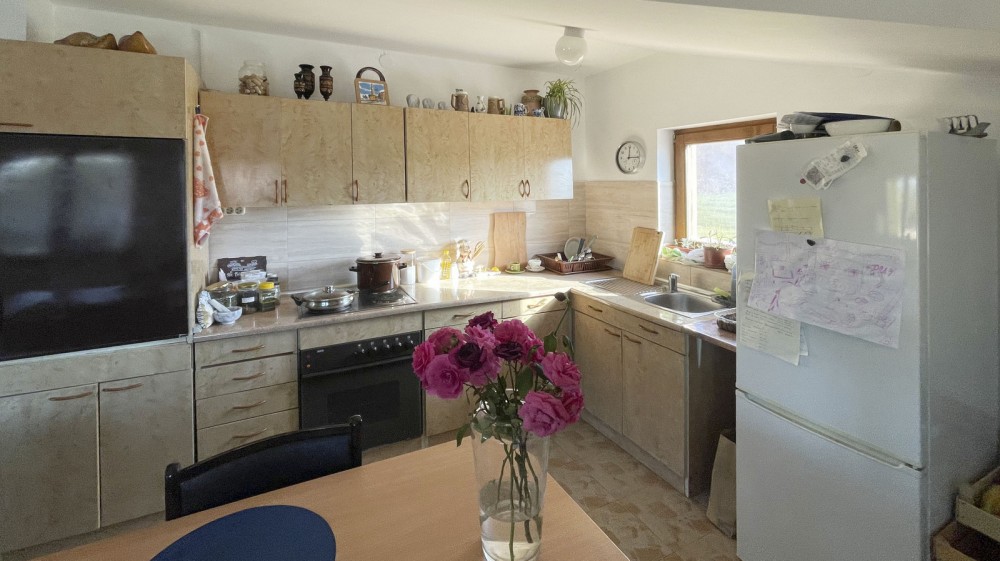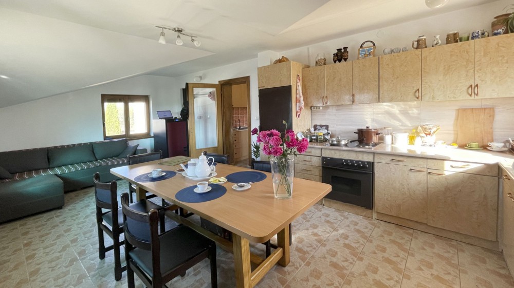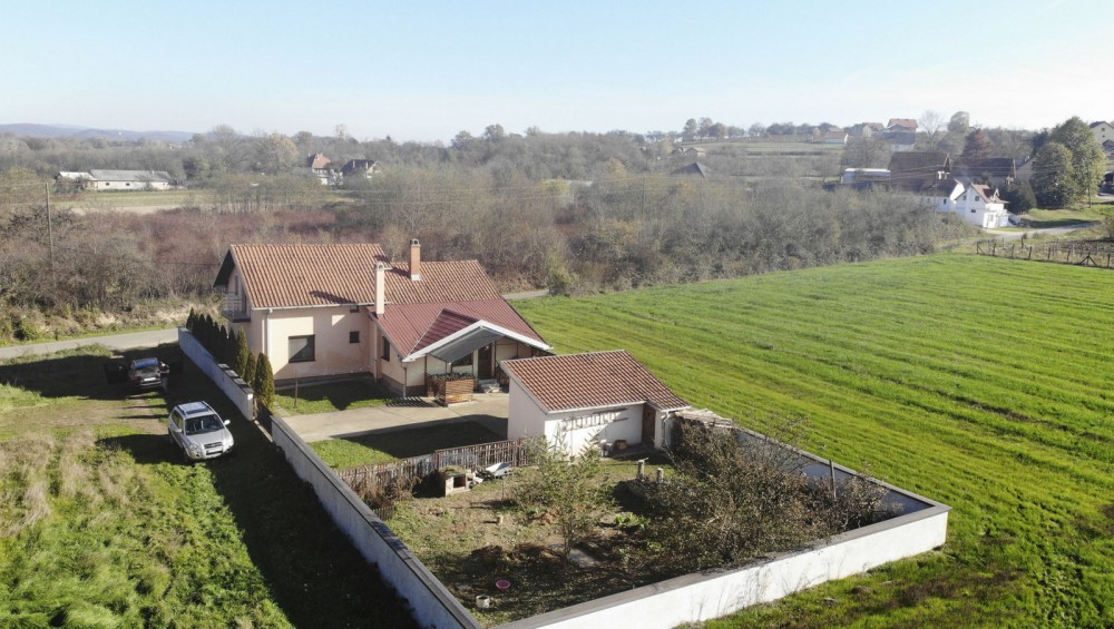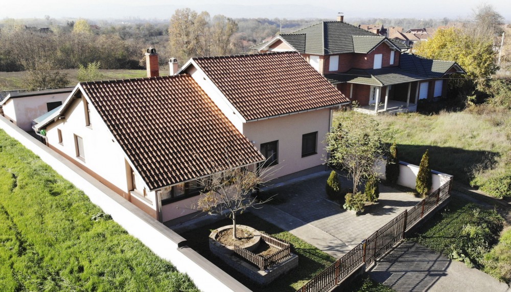 В 5 км от центра Лозницы (Западная Сербия) на небольшой возвышенности в селе Руняни продается семейный загородный дом 2005 года постройки. Общая площадь дома — 159 кв. м, жилая площадь — 111 кв. м. Дом состоит из двух этажей, соединенных внутренней лестницей. Первый этаж жилой (с отделкой и отоплением), на втором сделаны черновые работы. На первом этаже расположены: коридор, кухня, гостиная, небольшая комната/терраса с отдельным входом, три спальни и ванная комната. Под лестницей — место для хранения, кладовая. Второй, мансардный этаж состоит из двух помещений (под отделку) и террасы. Отопление осуществляется от пеллетного котла, радиаторы водяного отопления разведены по всему первому этажу. Также есть дровяной шпорет. Дом полностью термоизолирован снаружи (стиропор 10 см), установлены качественные итальянские деревянные окна (стеклопакеты). Подключены трехфазное электричество и городской водопровод. Канализация — септическая яма. Есть возможность подключения Интернета. Площадь земельного участка — 7,5 сотки. Участок полностью огорожен. Позади дома расположено вспомогательное строение (с подключенным электричеством). До участка идет асфальтированная дорога. Цена: 73 000 евро (с мебелью и бытовой техникой). Подробности