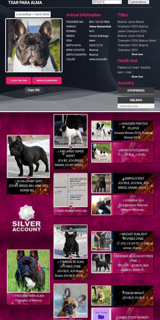 Отворено за парење!TSAR PARA ALMA (м.FREEDOM PARA ALMA о.ALISA GRANT GERT) Рођен 12.12.2023. 🏆Млади шампион Белорусије 2024. 🏆Млади шампион Белорусије 2024. 🏆Млади Гранд шампион Белорусије 2024. 🏆Млади НАЈБОЉИ Куп Минска 2024. 🏆Млади победник шампионата Белорусије по раси 2024. 🏆Шампион Белорусије расе 2025. 🏆Шампион Белорусије 2025! 🏆Млади победник CACIB-а «Куп Белорусије 2025» 🏆5*БИС 🏆5*БИГ Тек почиње изложбену каријеру. Патела 0/0, срце здраво, очи бистре. Директни потомак AVIGDORS PONTIUS PILATUS, TEXAS BOY V. FIVELZIGHT, DAULÖKKES LUFFEE и светских шампиона и победника Крафт расе. Доступан у Европи(можемо доћи у европске земље)! Више информација у приватним порукама 💌 https://www.facebook.com/share/1Hrodpo6Lf/ https://www.pedigreedex.com/pedigree/id-1765619?gen=4 Подробности