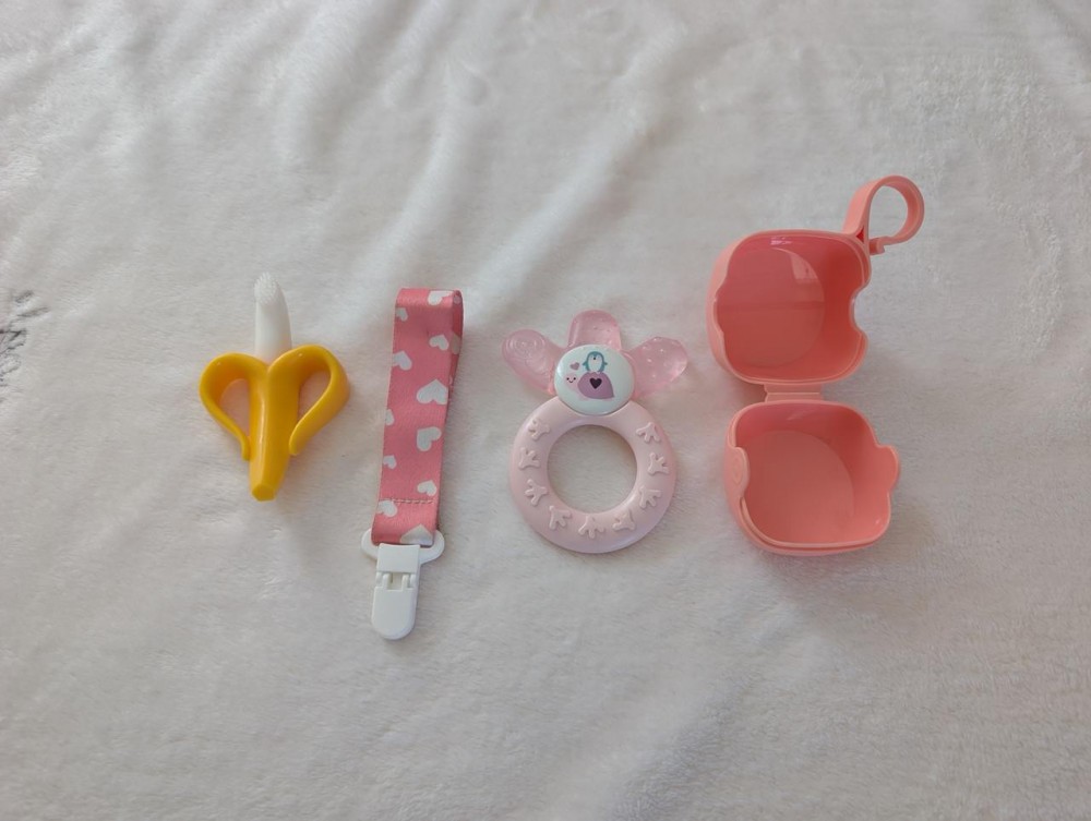 Отдам даром разное для малыша - слева-направо: - Щетка-грызунок - Держатель для соски - Грызунок - Контейнер для соски Всё в хорошем состоянии. Подробности
