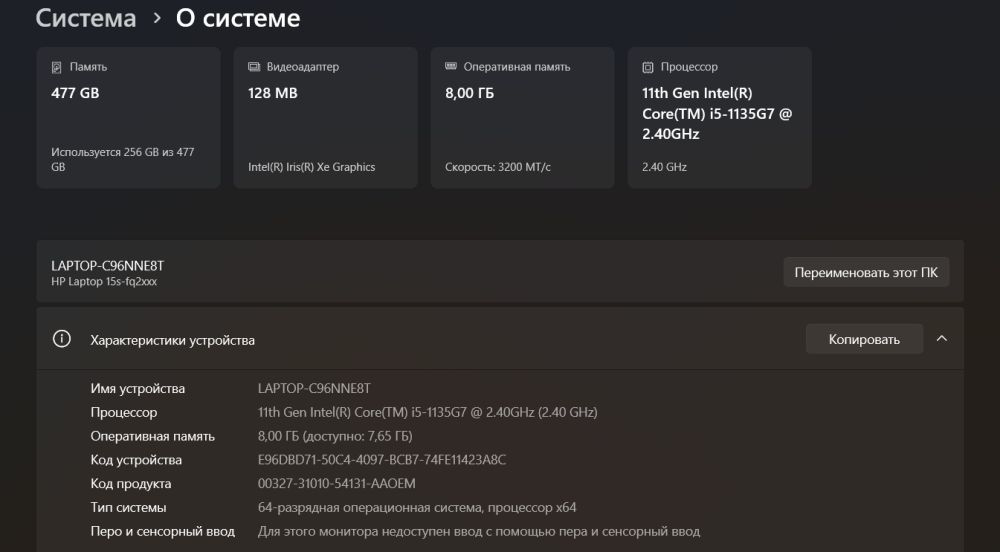 Продаю ноутбук HP Laptop 15s. Он оснащен процессором Intel Core i5-1135G7 с частотой 2.4 ГГц и встроенной видеокартой Intel Iris Xe Graphics. Экран с разрешением 1920×1080 обеспечивает четкое изображение. Оперативная память 8 ГБ. Работает под управлением Windows 11. Корпус серебристого цвета. Ноутбук в хорошем состоянии. Аккумулятор в хорошем состоянии, держит заряд долго. Хорошо подходит для учебы или работы. В комплекте идет оригинальная зарядка. Цена: 300€ Возможен торг Подробности