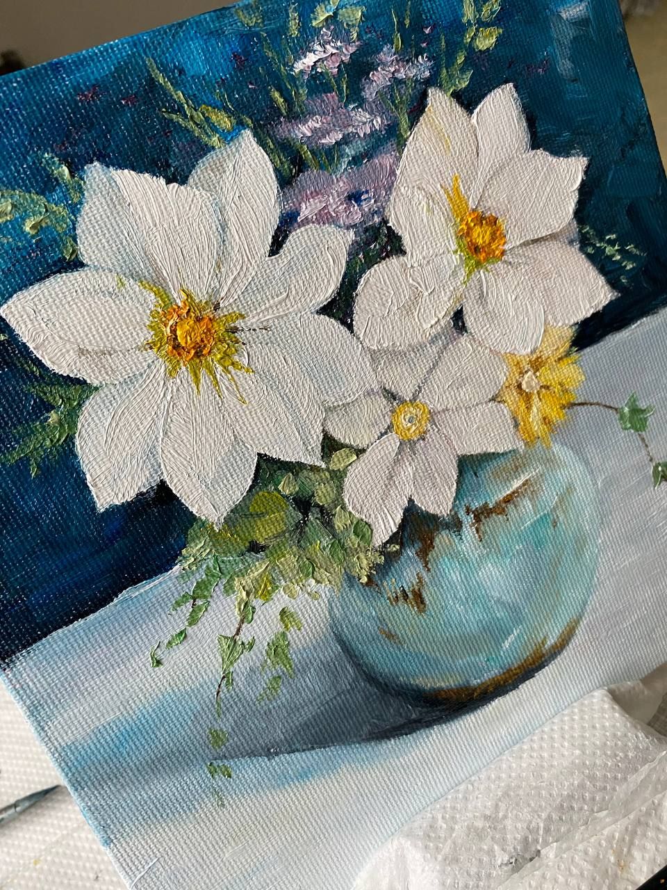 ✨ПРОДАЖА✨ Картина с цветами в вазе. Работа с масляными красками на картонном полотне. Новая. 20х20. Территориально Сремская Митровица. Можно почтой в любой город или самовывоз. Цена: 40€ (или предложите вашу) Подробности