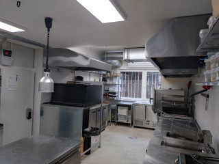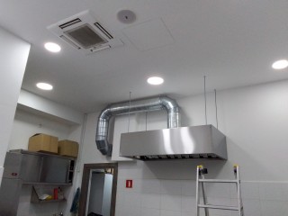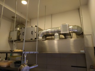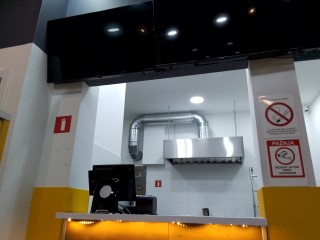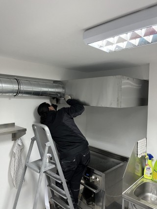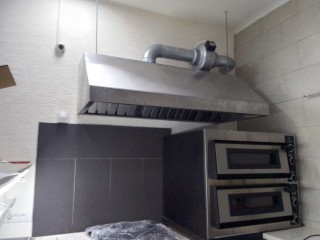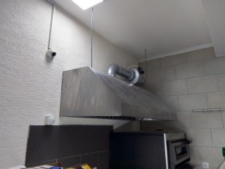 Изготовление, поставка и монтаж вытяжного зонта над плитой в кафе.