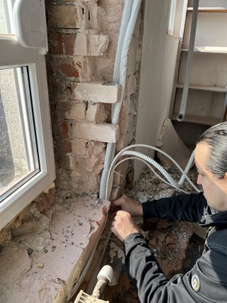 Сегодня было штробление и закладка трасс под два кондиционера.