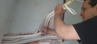 Закладка фреонопровода в штробы под три кондиционера .
