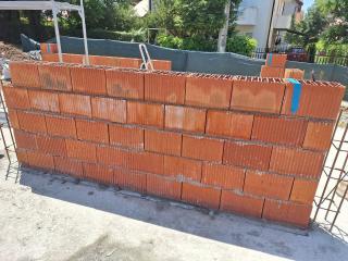 Большинство проблем со стенами в новых сербских домах возникает не из-за материала. Керамический блок (тёплый поризованный блок) — реально один из самых правильных выборов для нашего климата: отлично держит тепло зимой, не даёт перегреваться летом, гасит звук, «дышит» и спокойно несёт нагрузку 2–3 этажей. Проблемы почти всегда появляются из-за двух вещей: неправильной геометрии блоков и отсутствия понимания, как должна выглядеть правильная кладка. Геометрия блока — это 70 % успеха всей стены. Если блок «гуляет» по размерам хотя бы на 3–5 мм, то даже самый опытный мастер не сделает ровную кладку без толстых швов, щелей и мостиков холода. Мы встречались с исполнителями, которые привозили на объект блок без всякой геометрической ровности — результат получился соответствующий. Именно поэтому наш выбор — Wienerberger Porotherm Profi (шлифованная серия). Это блоки с точностью ±1 мм, системой паз-гребень и возможностью кладки на специальный клей Dryfix. Также я покажу, как правильно контролировать процесс, чтобы стена получилась тёплой, ровной и долговечной. Мы используем простой чек-лист. Не нужно заучивать все 11 пунктов — достаточно пройтись по ним с бригадиром один раз, и сразу видно, понимают ли ребята, с чем работают. Чек-лист правильной кладки Porotherm Profi 1. Прямолинейность и перпендикулярность кладки Как проверять: правило или лазер по всей высоте стены. Отклонение максимум 2 мм на 2 метра. 2. Отсутствие щелей и неплотного примыкания (более 2 мм) Блок должен «садиться» почти без видимого шва. Зазор больше 2 мм = мостик холода. 3. Целые грани в проёмах В дверных и оконных проёмах — только целые блоки. Никаких половинок и третинок. 4. Правильное заведение углов Угол начинается с целого блока, перевязка минимум на ½ блока. 5. Вертикальная перевязка — максимум 1/3 блока Главное правило тёплой керамики. Меньше — стена теряет жёсткость. 6. Правильное использование доборов (70 мм) Добор — не «затычка». Используем только там, где стандартный блок не встаёт. 7. Горизонтальные швы — ровность и толщина Идеально 8–12 мм (лучше 10 мм). Раствор/клей наносится равномерно, без пустот. 8. Перевязка с внутренними несущими стенами Минимум на ½ блока + анкеры при необходимости. 9. Перевязка с перегородками Перегородки тоже перевязываются, иначе в углах пойдут трещины. 10. Вертикальные швы Там, где нет паз-гребня — шов должен быть полностью заполнен. 11. Чистота кладки Нет наплывов раствора, минимум подрезок, никаких сколов на блоках.