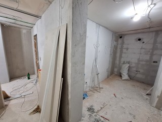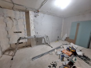 Процесс капитального ремонта квартиры 55 мкв. в г. Панчево - Штукатурка стен, наливные полы, сборка гипсокартона, шпатлевание стен.