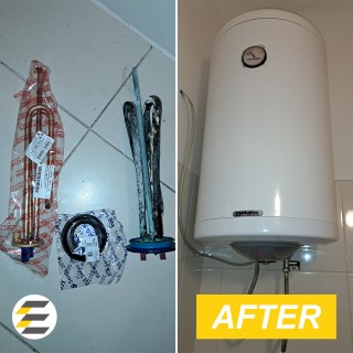 На месте выяснилось, что у бойлера вышел из строя нагревательный элемент (тен).⚡️ Специалист приобрел новые детали (тен и уплотнительную прокладку) и на следующий день был произведен ремонт бойлера.